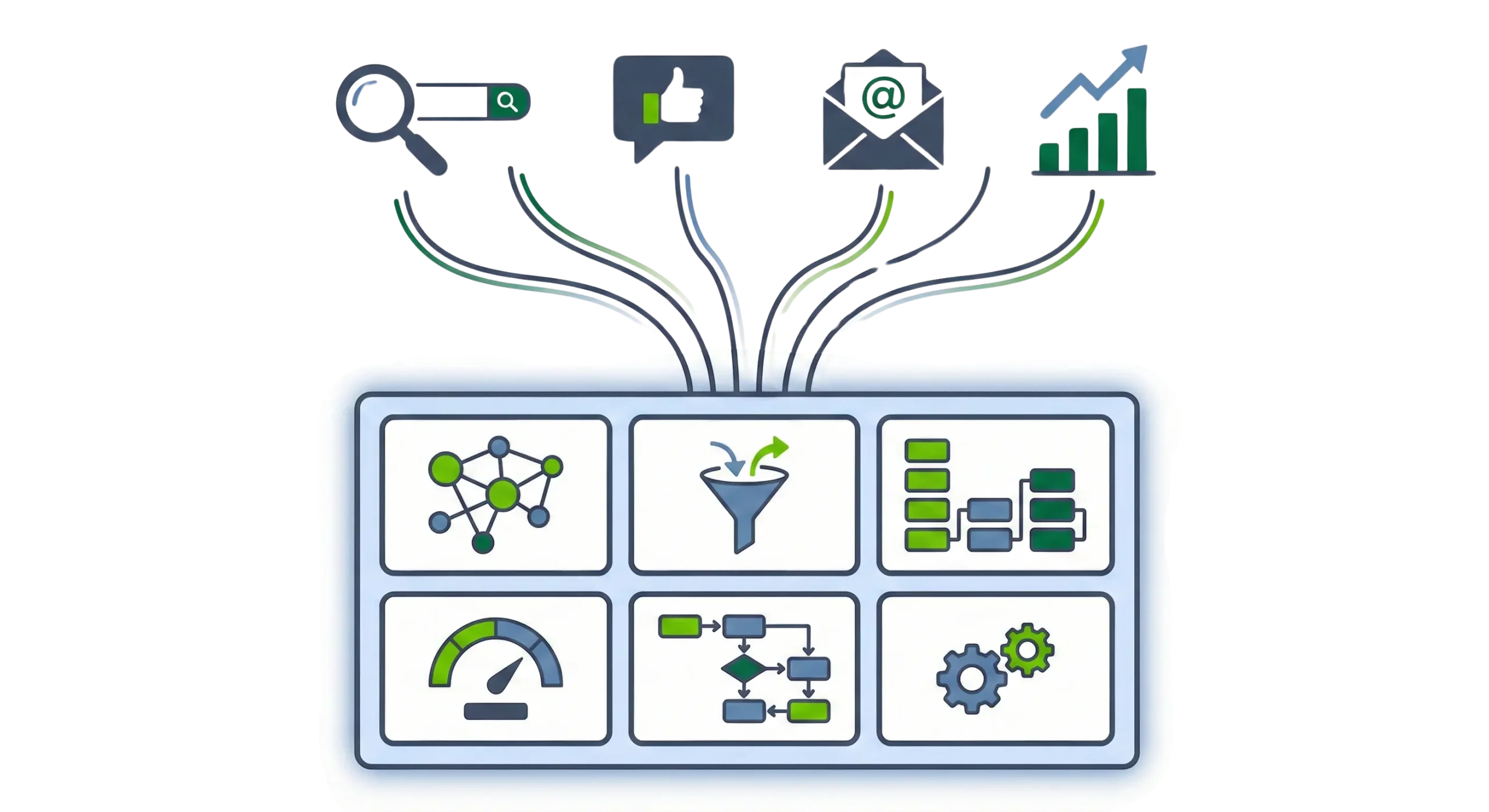 We map decisions directly to Search, Social, Paid, Lead, Ecom, CX, Data, Ops and GrowthLab OS – so teams see themselves in the system.